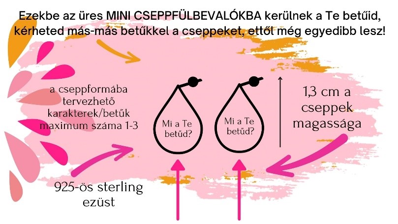 A cseppékszered egy púder színű logózott szütyőben érkezik meg hozzád, melynek tartozéka még egy ezüst tisztító kendő, valamint egy kártya, mely segíti a betűk kiolvasását.